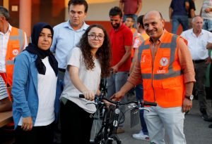 Seçimlerde söz verdiğimiz gibi “Her Eve Bir Bisiklet” Projemizi başlattık. Her haneye bir bisiklet veriyoruz. Bu Türkiye’de uygulanan ilk projedir. Başta gençlerimi olmak üzere tüm vatandaşlarımız büyük ilgi gösteriyor. Bu çalışmaların sonunda ilçemizde daha sağlıklı ve güvenli ulaşımı sağlamayı amaçlıyoruz.” İfadelerini kullandı.
